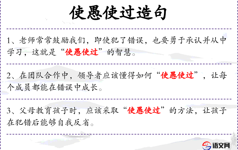 - 可以尝试用不同的句式表达相同的意思,例如:“在企业管理领域,运用‘使愚使过’这一策略,能够有效地促进员工的自我提升。”