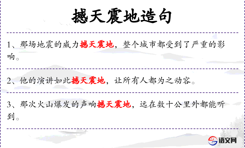 - 撼天震地:成语,形容声音极大,震撼天地。