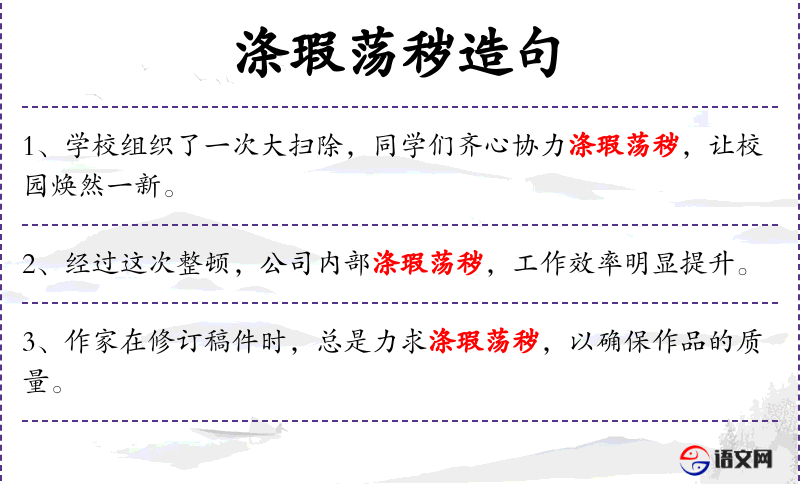 4. 【涤瑕荡秽】 涤:清除;瑕:玉上的斑点;荡:清除;秽:肮脏。指清除旧的恶习。