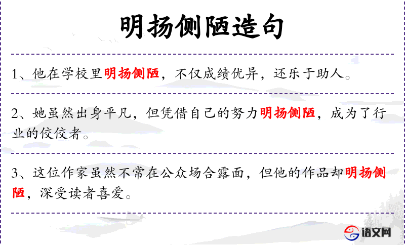 - 明扬侧陋:作品虽然不显眼,但名声远扬