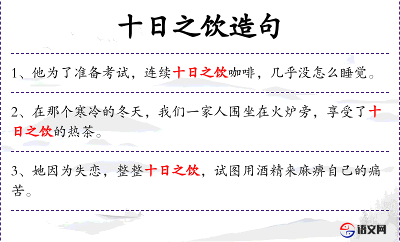 1. 【十日之饮】 比喻朋友连日尽情欢聚。