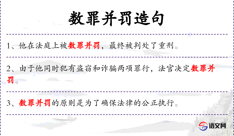 - 被数罪并罚:短语,表示因多个罪行而被合并处罚。