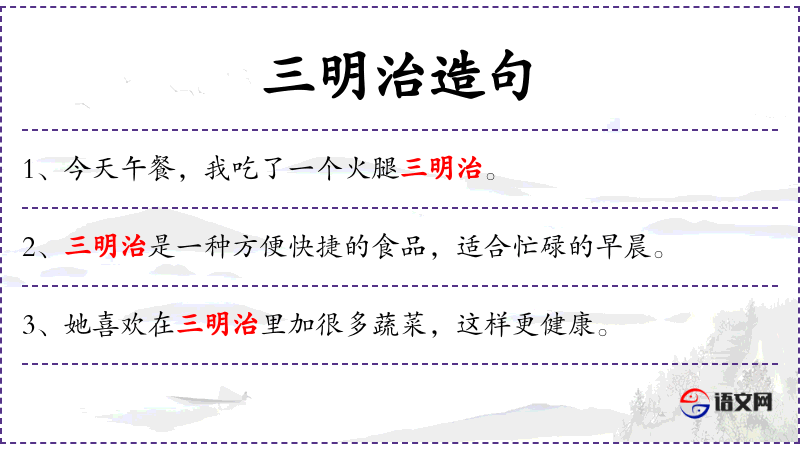 2. 【三明治】 - 夹有肉、干酪等的面包。