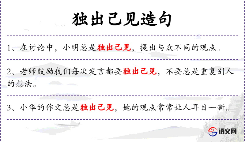 3. 【独出己见】 见:见解、主张。与别人不同地提出自己的见解和主张。
