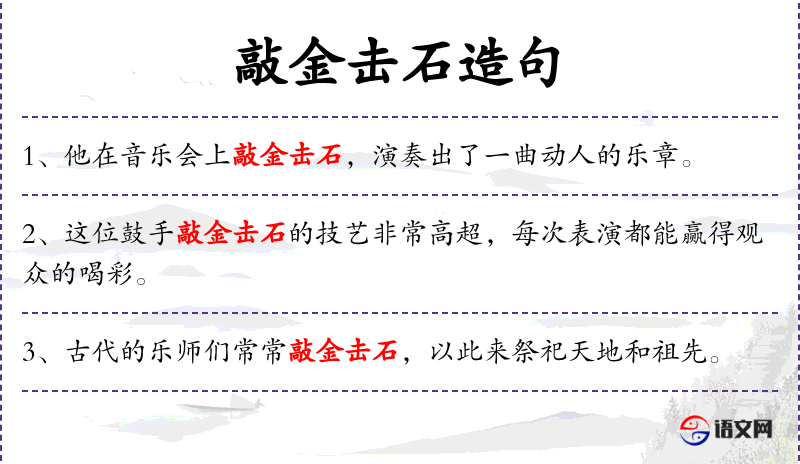 “敲金击石”可能与古代的某些仪式或表演有关,如宫廷音乐或仪式。了解这些背景可以更深入地理解句子的文化内涵。