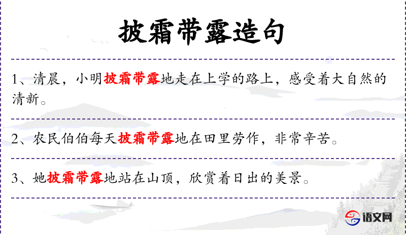 - 句子中的“披霜带露”可能蕴含了**传统文化中对自然美的赞美,强调了人与自然的和谐共处。