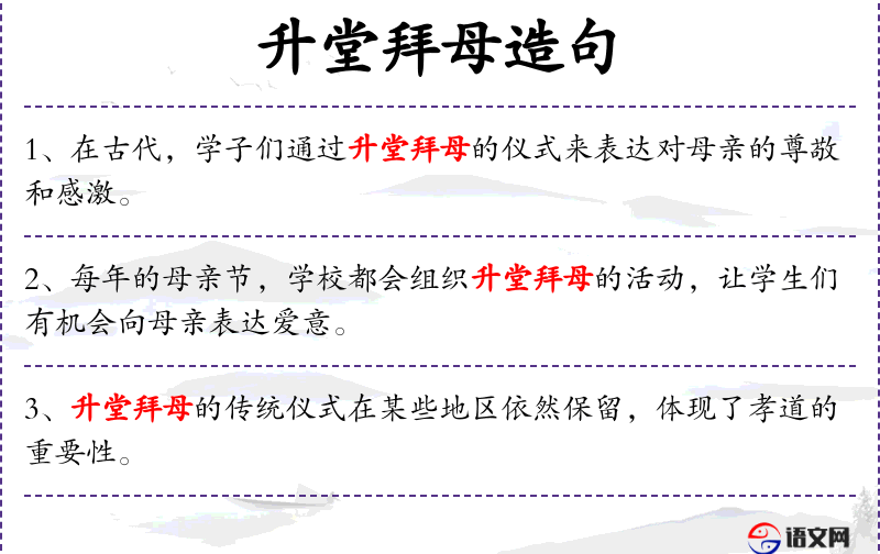 句子:“通过参与升堂拜母的活动,学生们学会了如何在日常生活中更好地尊敬和关爱父母。”
