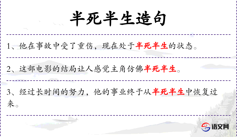 - 宾语:半死半生的感觉