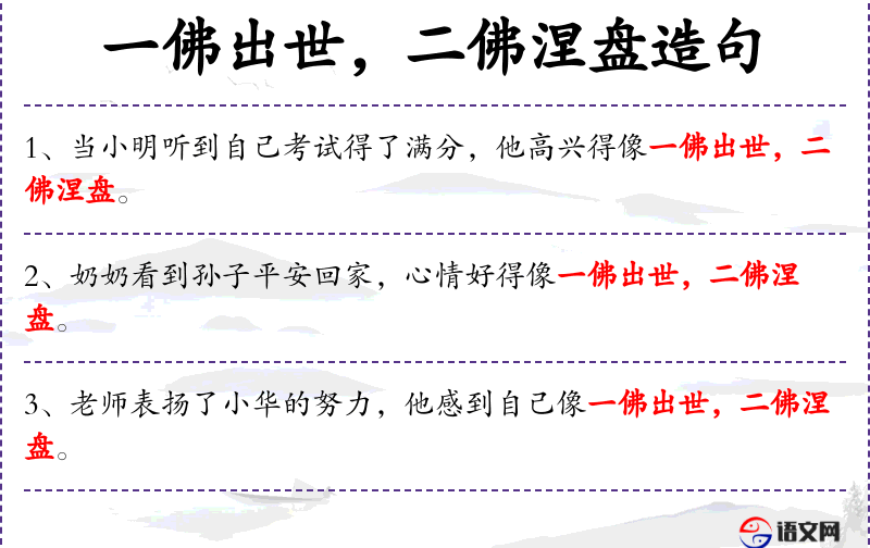 “像一佛出世,二佛涅盘”这个成语源自**文化,用来形容人的情绪极度激动或高兴。了解这个成语的文化背景有助于更好地理解句子的深层含义。