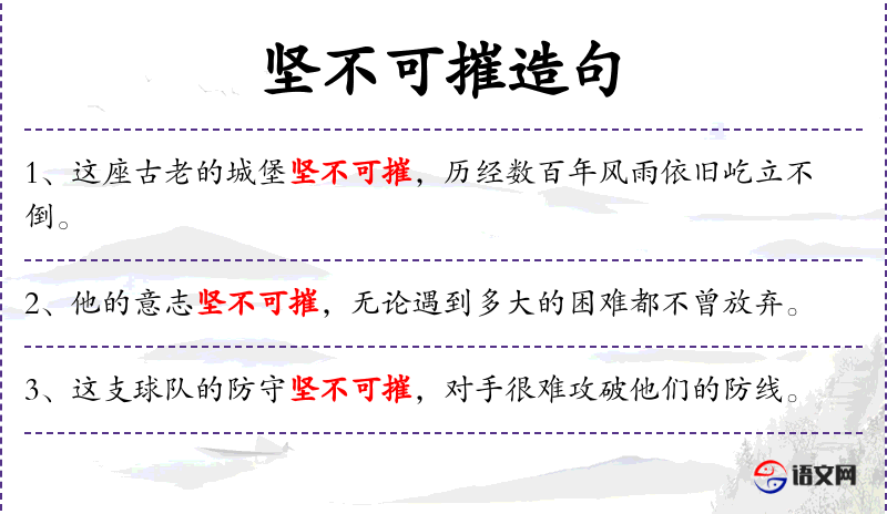 - 坚不可摧:形容词短语,表示非常坚固,无法被破坏或击败。