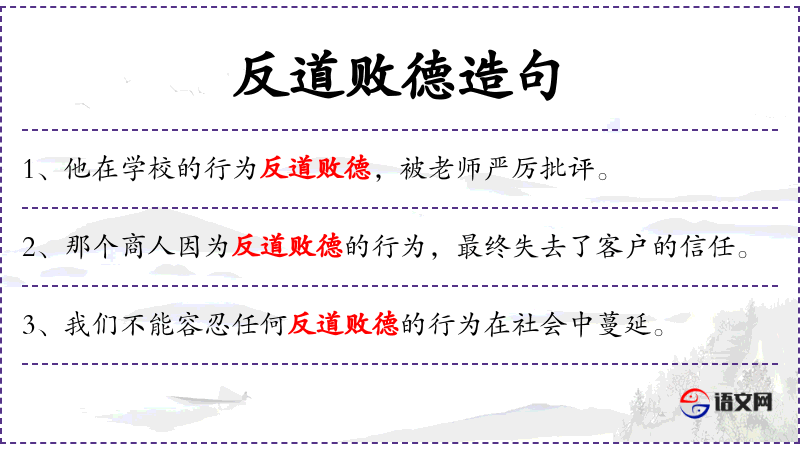 - 反道败德:违背道德,败坏品德。