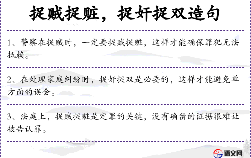 - 捉奸捉双:这是一个成语,意思是捉拿通奸的双方,比喻处理问题时要抓住关键的两方面。