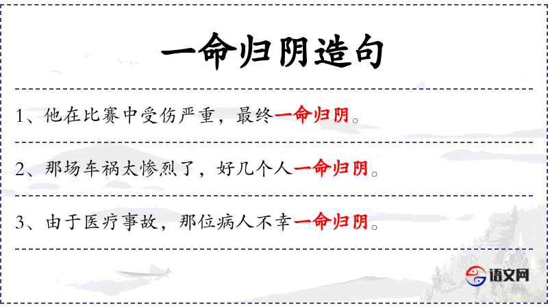 “一命归阴”是文化中对死亡的一种委婉表达,源自于对死亡的避讳和对生命的尊重。在传统文化中,直接提及死亡被认为是不吉利的,因此使用这样的委婉语来描述死亡。