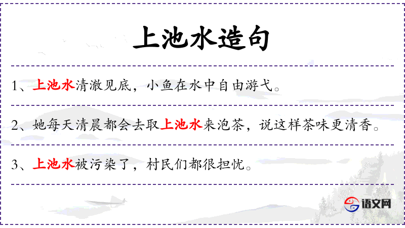 1. 【上池水】 - 指凌空承取或取之于竹木上的雨露◇用以名佳水。