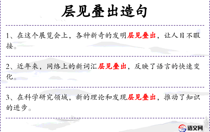 - 德文:使用“tauchen immer wieder auf”来表达“层见叠出”,强调作品的持续出现。