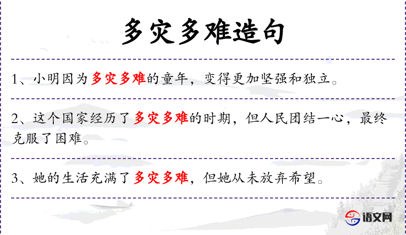 - 多灾多难:困难重重、坎坷不平