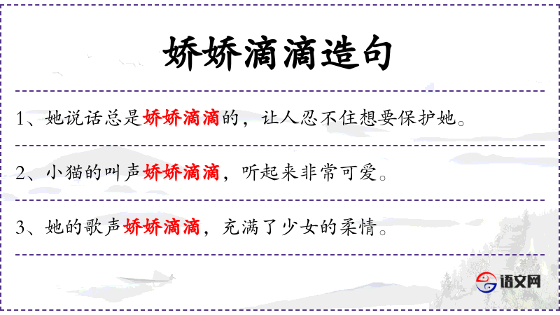 - 定语:“娇娇滴滴”(修饰“叫声”)