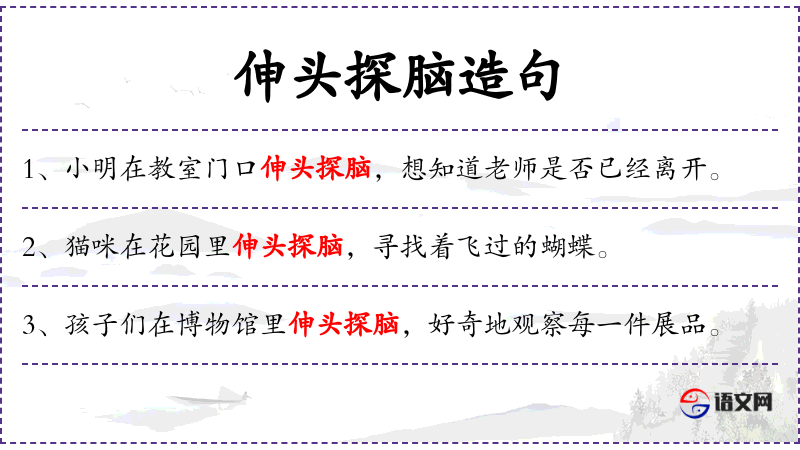 - 谓语:伸头探脑