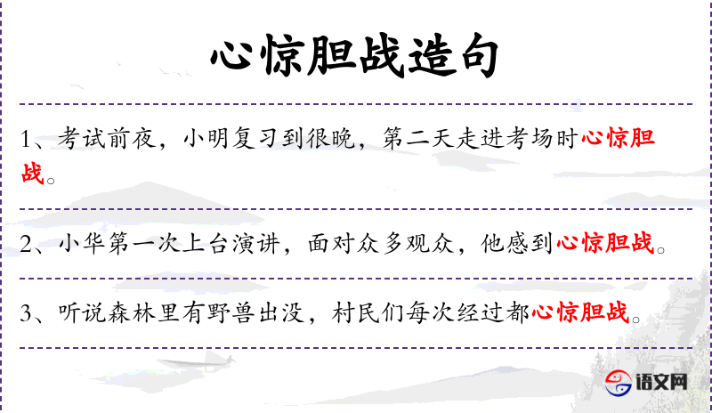 - 补语:心惊胆战