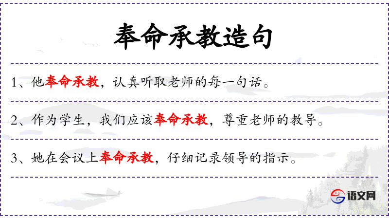- 奉命承教 → obey and learn