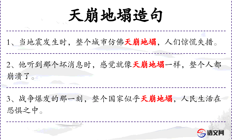 - 就像:介词短语,表示比喻。 *. 天崩地塌:成语,形容极大的灾难或变化。