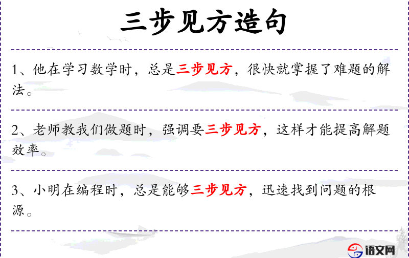 1. 【三步见方】 - 原谓将战时,兵士出阵行三步以示勇◇以指将舞时三顿足以为节。