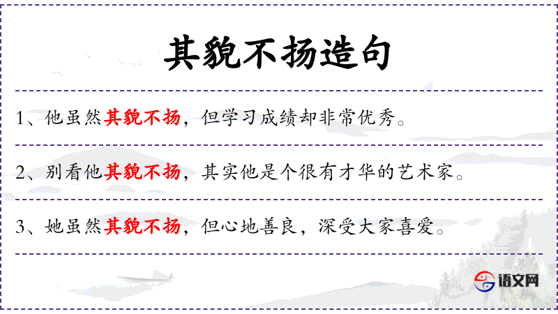 - 其貌不扬:成语,形容外表不出众