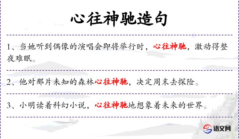 - 心往神驰:成语,形容心情非常激动,向往不已。
