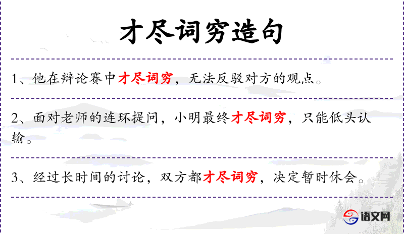 - 由于在辩论赛中才尽词穷,他无法继续反驳对方的观点。