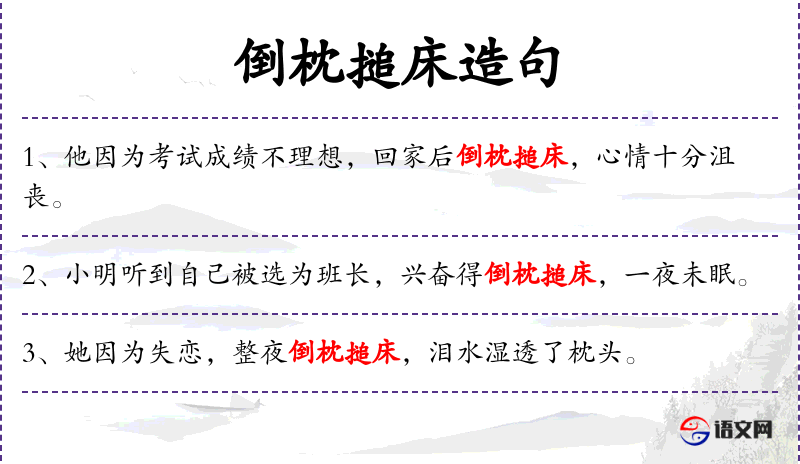 1. 【倒枕搥床】 烦躁,无奈,气愤或悲痛的样子。形容辗转难以入睡。同“捣枕槌床”。