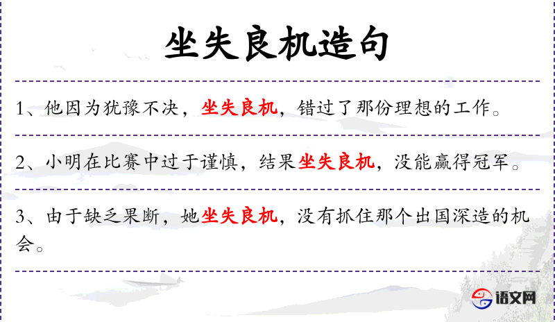 - 坐失良机:成语,表示因为犹豫或不作为而失去了好的机会。
