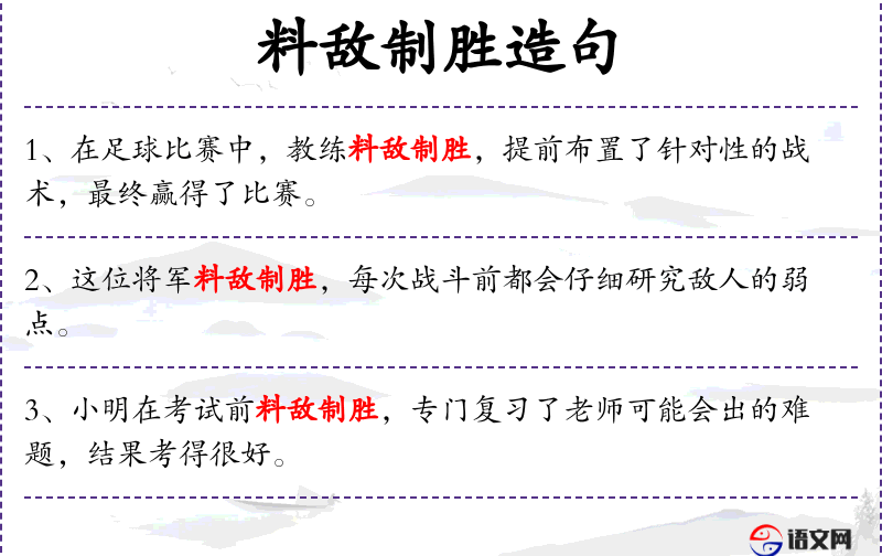 4. 【料敌制胜】 准确地判断敌情,并蠃得胜利。