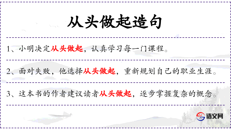 句子:“老师鼓励学生们从头做起,逐步提高他们的写作技巧。”