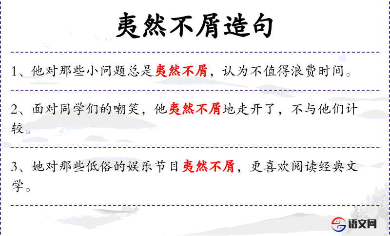 - 夷然不屑地:形容态度轻蔑,不以为意。