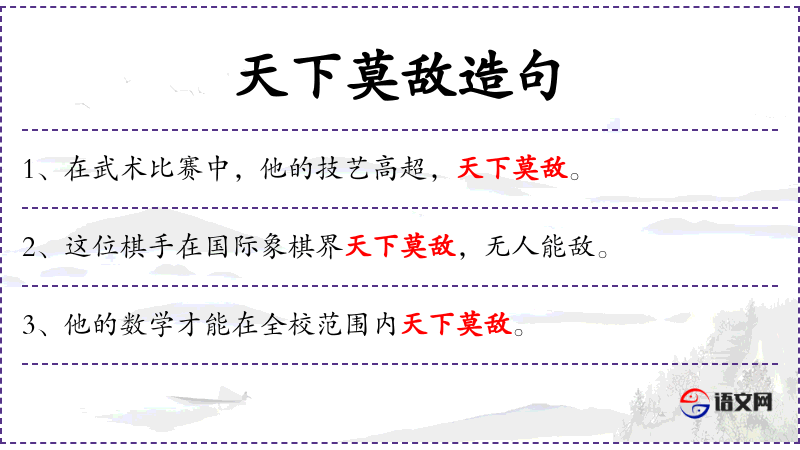 - 谓语:“天下莫敌”