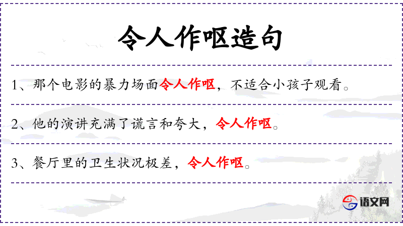 - “小孩子不应该观看那个电影,因为它的暴力场面令人作呕。”