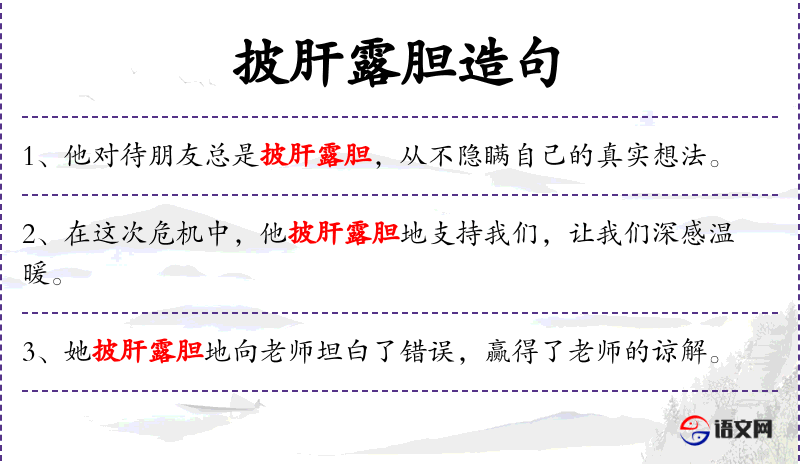 - “披肝露胆”是一个成语,源自**古代文学,用来形容非常坦诚和真诚的态度。