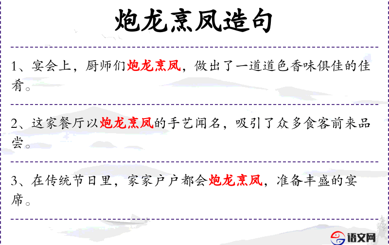 6. 【炮龙烹凤】 形容豪奢珍奇的肴馔。