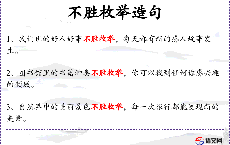 - 谓语:“不胜枚举”