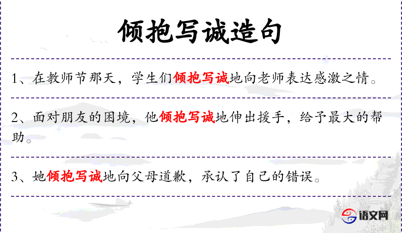 - 倾抱写诚地:状语,形容学生们表达感谢的方式,意为非常真诚和热情。
