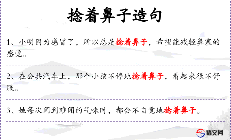 - 那个小孩在公共汽车上不停地捻鼻子,看起来很不舒服。