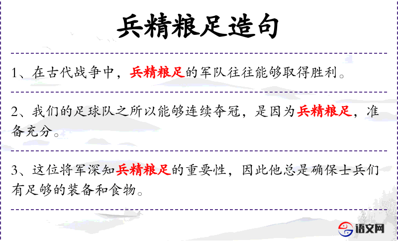 句子:“兵精粮足的军队在战场上总是显得格外有信心。”