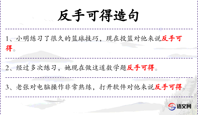 - 反手可得:易如反掌、轻而易举、手到擒来