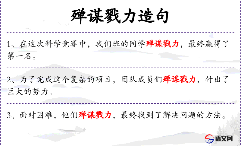 6. 【殚谋戮力】 竭尽智谋和精力。