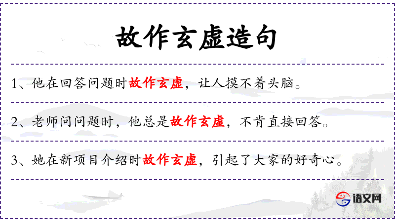 - 谓语:解释、故作玄虚、让