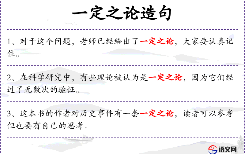 1. 【一定之论】 已经确定下来不可更改的论断。