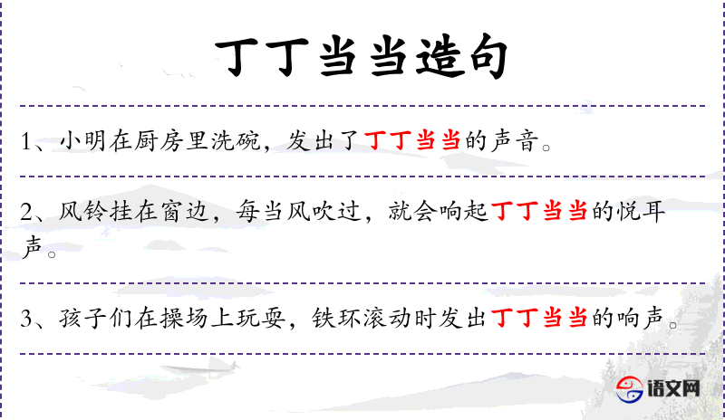 - 从句:金属积木碰撞时发出丁丁当当的响声