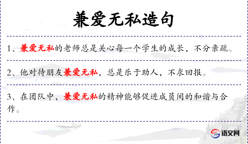 - “兼爱无私”是**传统文化中的重要价值观,强调公平和无私。