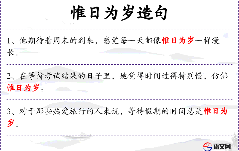 - 文化背景:成语“惟日为岁”在**文化中常用来形容等待某事时的焦急心情。