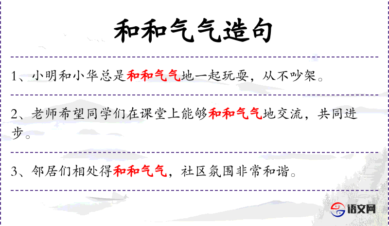 - 和和气气:形容气氛和谐,人们相处融洽。